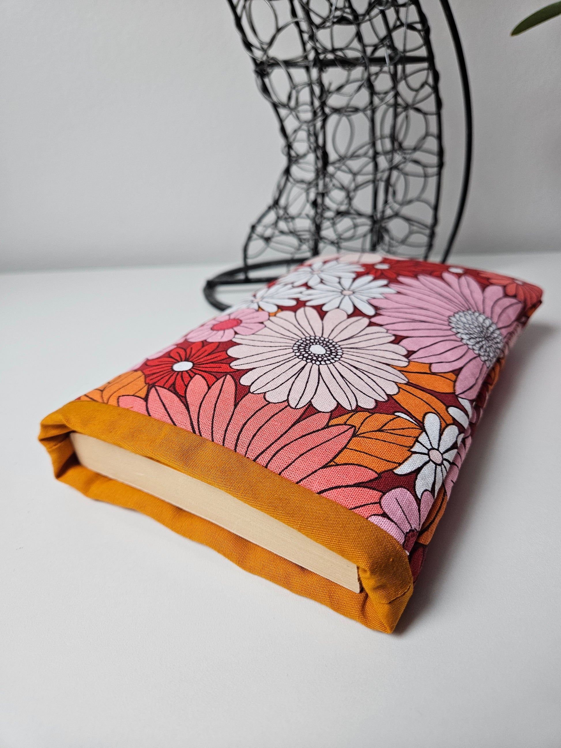 Protégez vos livres avec style grâce à cette housse de livre au motif floral vintage ! Son tissu extérieur orné de grandes fleurs aux tons chauds et sa doublure ocre apportent une touche de bonne humeur à vos lectures, tout en gardant vos livres à l’abri des rayures, du sable, ou des coins de sac un peu trop pleins.